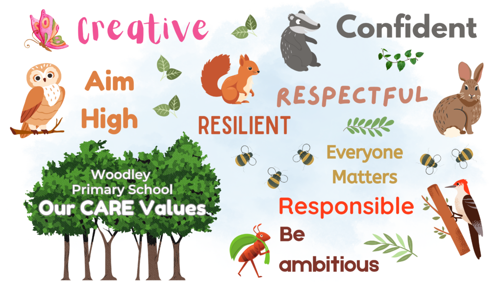 At Woodley Primary School, our motto, “At Woodley, we CARE” encapsulates the essence of our community and our commitment to nurturing a supportive and inclusive environment.