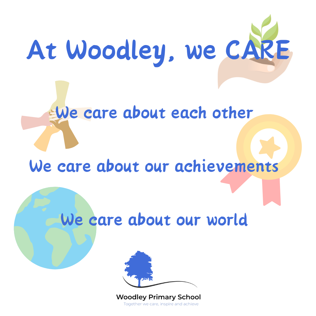 At Woodley Primary School, our motto, “At Woodley, we CARE” encapsulates the essence of our community and our commitment to nurturing a supportive and inclusive environment.